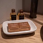 Nogle værelser vender mod søen. For bekvemmelighed er der et bidet, separat toilet og et badekar i hvert badeværelse.